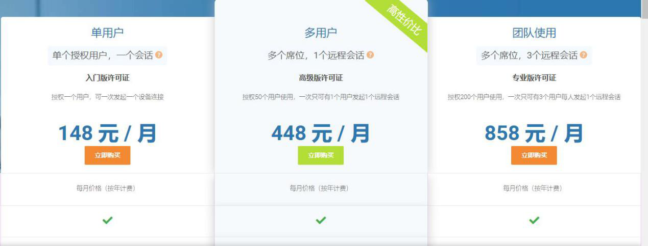 遠(yuǎn)程辦公都會(huì)想到Teamviewer這款軟件,但是免費(fèi)的限制可能會(huì)讓大家用著不太方便。付款價(jià)格相對(duì)較高,不適合個(gè)人用戶長(zhǎng)期使用。