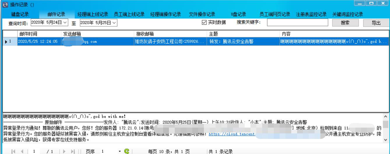 想通過(guò)郵件泄密?發(fā)給誰(shuí)了??jī)?nèi)容是什么?外發(fā)的郵件都會(huì)被記錄!你以為這是HTTP郵件?錯(cuò)了!HTTPS!加密的郵件都能被記錄!