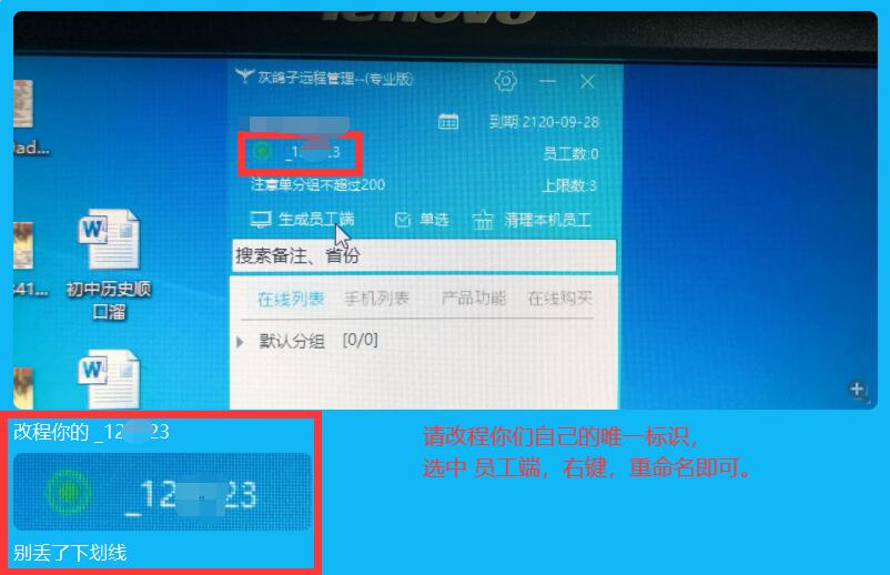 5、單獨(dú)下載的灰鴿子遠(yuǎn)程管理系統(tǒng)員工端提示:格式名錯(cuò)誤?賬號(hào)下有您的唯一標(biāo)識(shí),由下劃線和一串?dāng)?shù)字構(gòu)成。將員工端改為您自己的唯一標(biāo)識(shí)即可。不要丟掉下劃線哦!