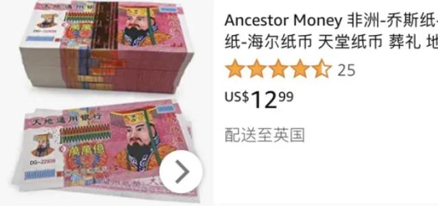 目前中國冥幣,在國外諸如亞馬遜的電商平臺(tái)異?;鸨?,隨便一沓紙錢,國內(nèi)幾塊錢,轉(zhuǎn)手國外就是十多美元。