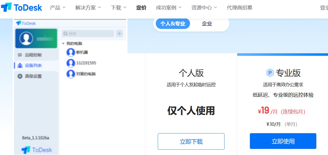 首先是風(fēng)頭很大的ToDesk,ToDesk整體界面簡(jiǎn)介時(shí)尚,左側(cè)菜單欄列有4個(gè)子欄,右側(cè)則是各個(gè)菜單欄的詳細(xì)內(nèi)容,軟件設(shè)置與功能的層級(jí)關(guān)系明確。使用上進(jìn)入首頁(yè)后直接展示本地設(shè)備的設(shè)備代碼與臨時(shí)密碼,以及輸入遠(yuǎn)程的設(shè)備代碼窗口等,只要獲取到被控設(shè)備的雙碼并輸入到窗口,即可連接。缺點(diǎn)就是免費(fèi)版限速還是有點(diǎn)嚴(yán)重的,而且強(qiáng)大的營(yíng)銷(xiāo)需要資金支持,免不了價(jià)格要高一些。