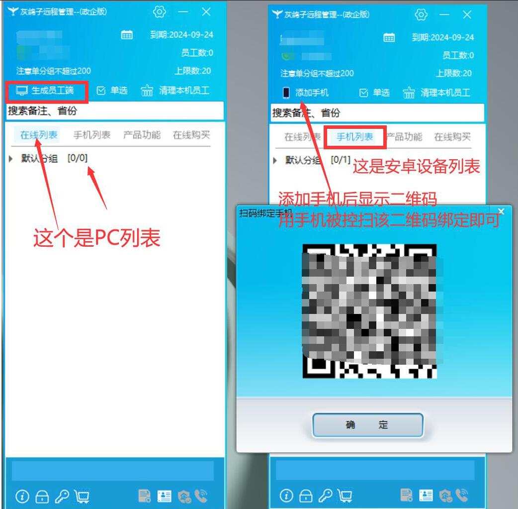 首先,在PC電腦上下載經(jīng)理端。經(jīng)理端生成員工端。經(jīng)理就是您用的,員工端就是被遠(yuǎn)控的電腦,或者說您要遠(yuǎn)程控制的那臺(tái)電腦。只要您點(diǎn)擊“生成員工端”默認(rèn)一定是線上最新版本的員工端。員工端上線之后,右鍵操作即可。