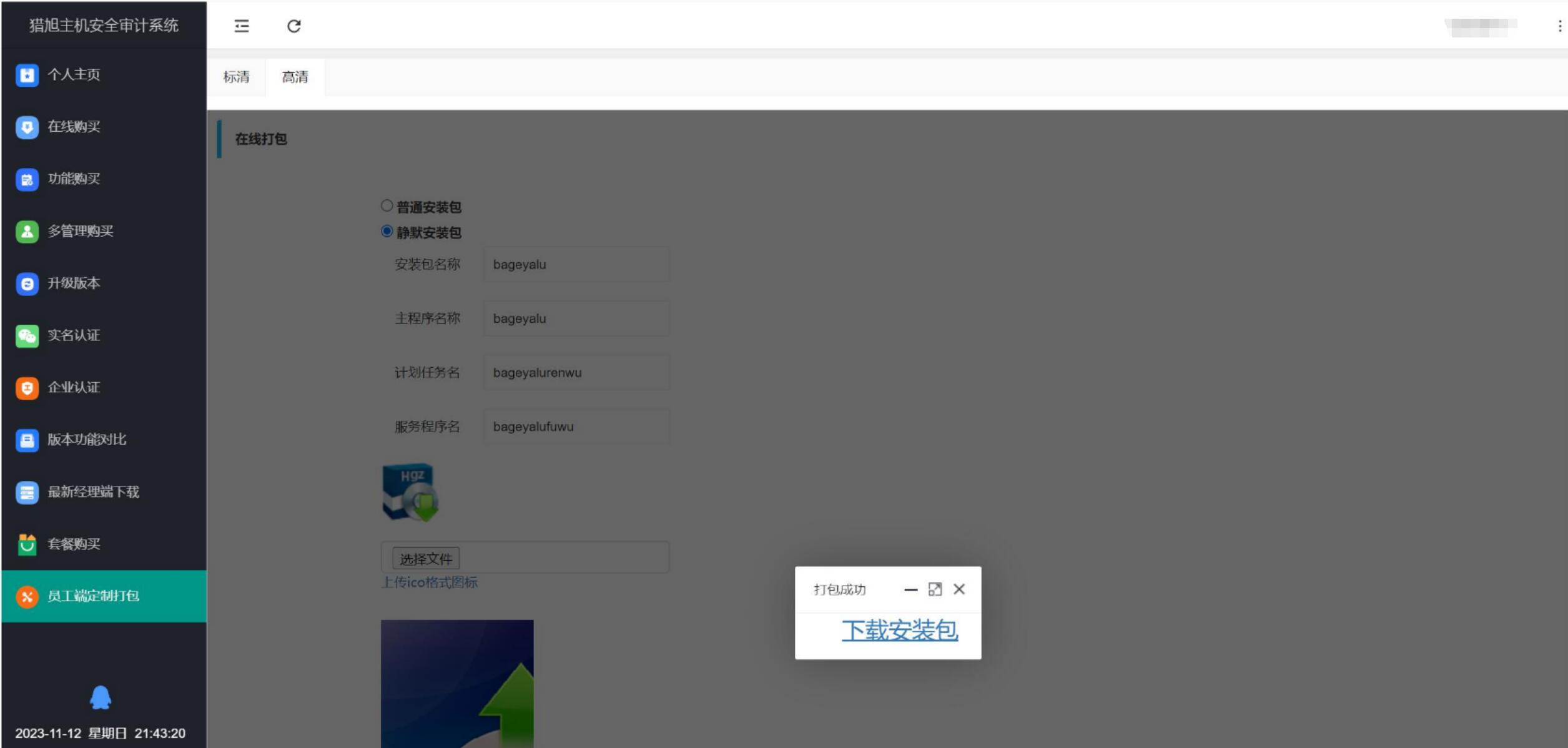 5、員工端定制打包可在線打包高清版:自定義產(chǎn)品進(jìn)程、服務(wù)等。