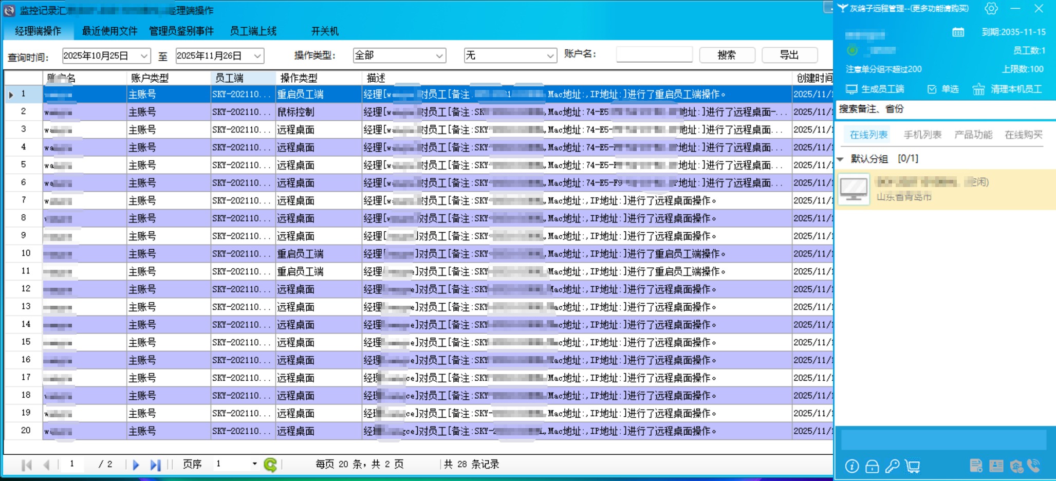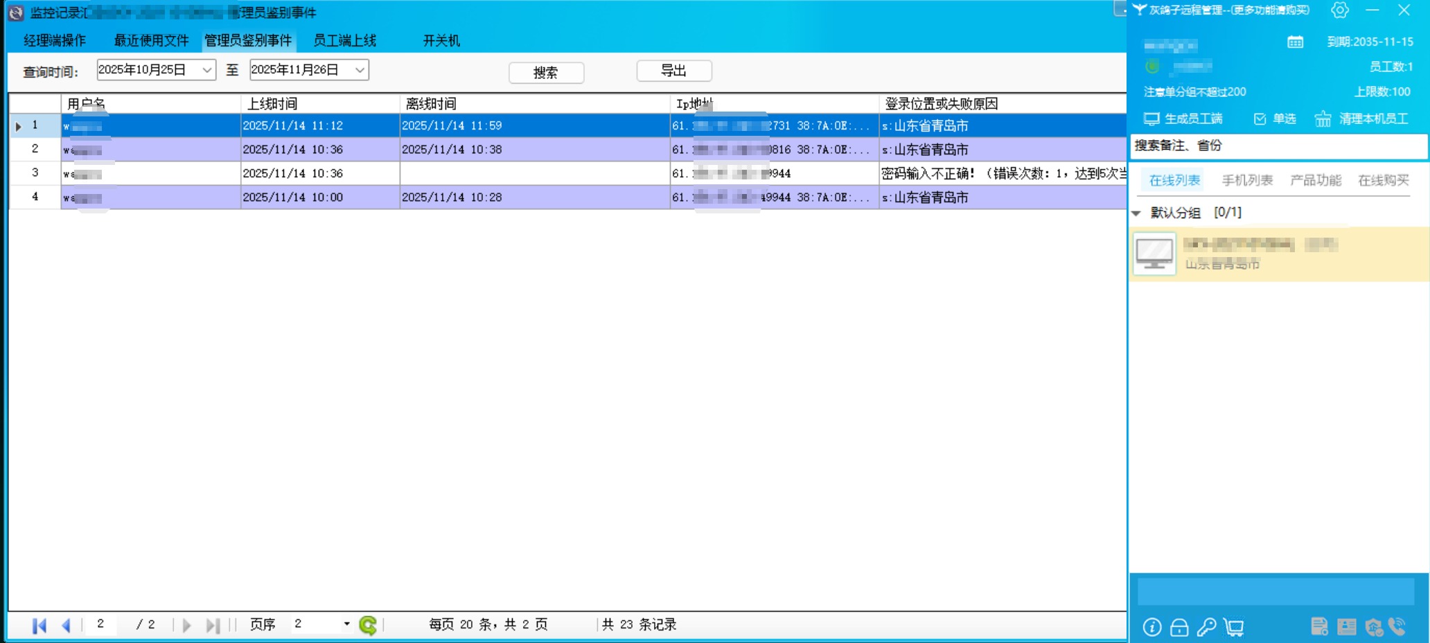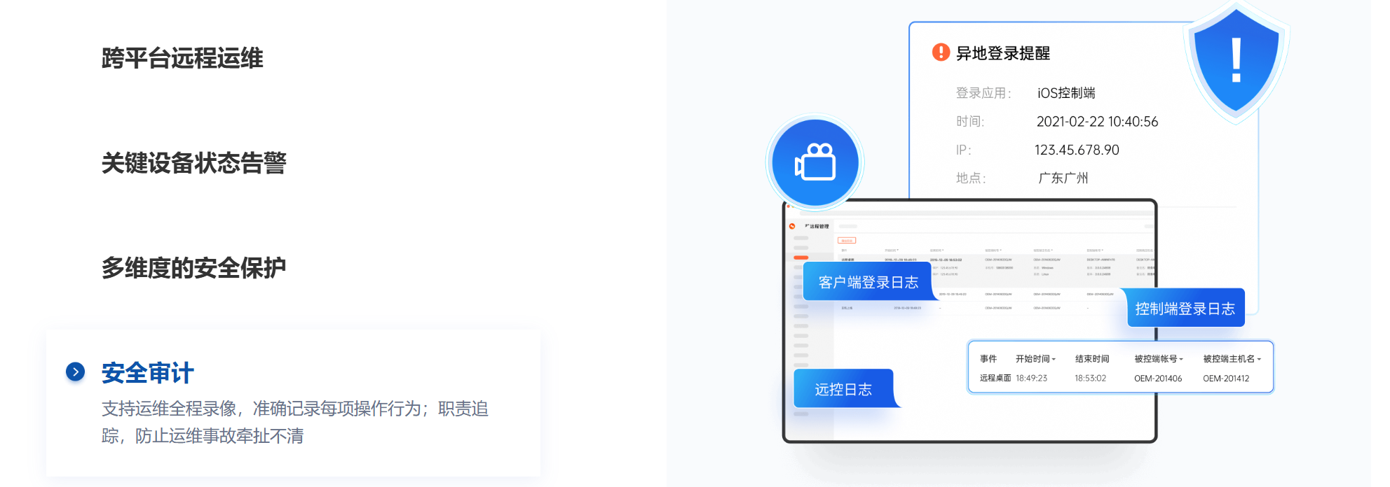 新產(chǎn)品將某葵的企業(yè)審計日志免費??梢杂涗浗?jīng)理對員工什么時間做了什么操作,員工設備上線和下線時間,甚至包含了開關(guān)機日志。包括賬號異常登錄,異地登錄會核驗用戶身份,同時賬號密碼錯誤會記錄相應日志。