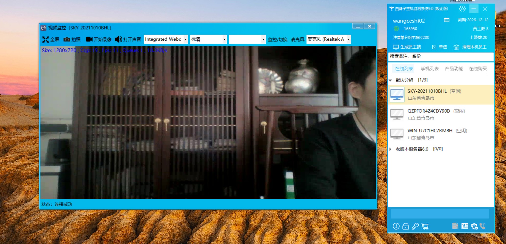 重點來了:在經(jīng)理端右鍵點擊在線設(shè)備,選擇“設(shè)備監(jiān)控”或“視頻監(jiān)控”,即可實時打開對方電腦攝像頭畫面。灰鴿子支持同時打開多臺電腦的攝像頭,形成“視頻墻”功能,同一窗口觀看多個攝像頭畫面。如果攝像頭支持云臺旋轉(zhuǎn),還能遠(yuǎn)程控制上下左右轉(zhuǎn)動角度。