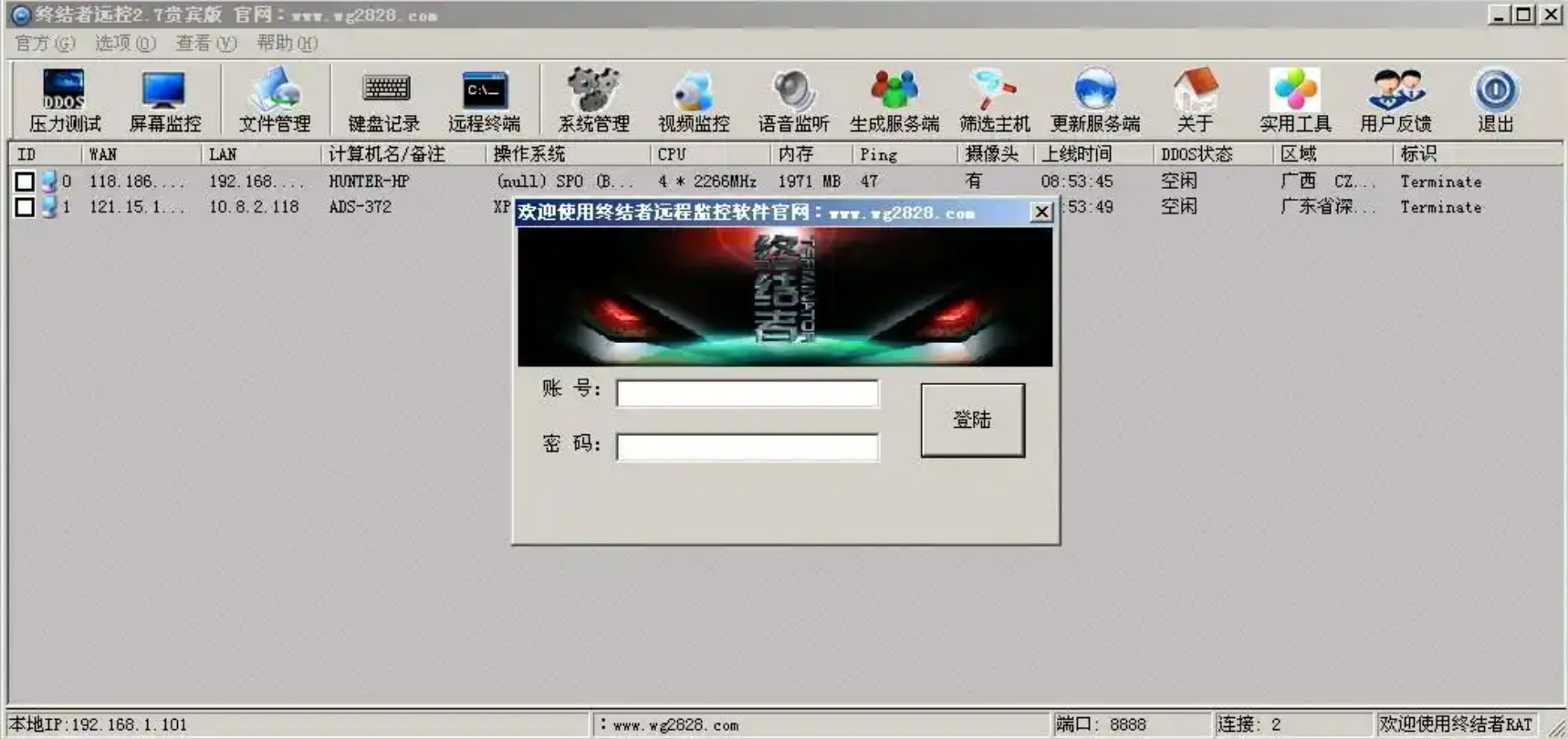 終結(jié)者當時集成了DDOS功能,讓遠程控制自帶DDOS攻擊功能。因為之前DDOS攻擊軟件和遠程控制都是分開的,DDOS是DDOS,遠程控制是遠程控制。理論上來說二者是分開的,而終結(jié)者率先將二者組合到了一起,給用戶耳目一新的感覺,加上界面比較炫酷,用戶都很喜歡。