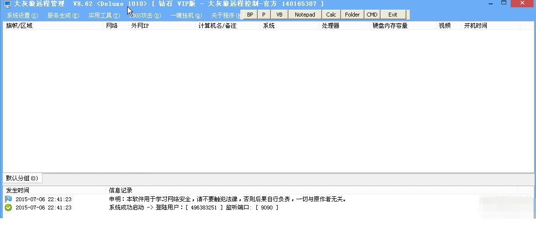 大灰狼遠(yuǎn)控,稱呼為:大灰狼遠(yuǎn)程控制軟件? 這個(gè)遠(yuǎn)程控制是用Ghost遠(yuǎn)控源碼改的。作者跟白金遠(yuǎn)程控制一樣進(jìn)去了(被抓)