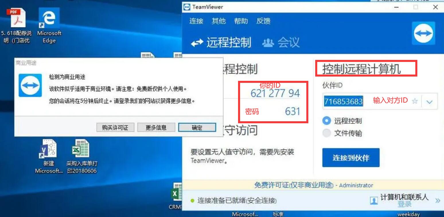 下一個介紹的軟件是:Teamviewer,缺點是如果多連了幾次,就被認定商用,要求你購買產(chǎn)品,不如灰鴿子免費的徹底,功能單一。使用Teamviewer也比較簡單。首先,你和被協(xié)助者分別安裝下載安裝TeamViewer,啟動TeamViewer并記錄下左側(cè)的ID號和隨機密碼(自動隨機生成),如果你需要對方控制,就將ID和密碼告訴對方。如果你需要控制對方電腦,就問對方要這個ID和密碼。 如下圖所示:填寫被遠程操控電腦的ID對應的密碼,然后點擊登錄。需要你輸入密碼的時候,輸入對方給你的密碼即可連接成功。登錄成功就能進入對方電腦界面了,開啟遠程控制操作即可。