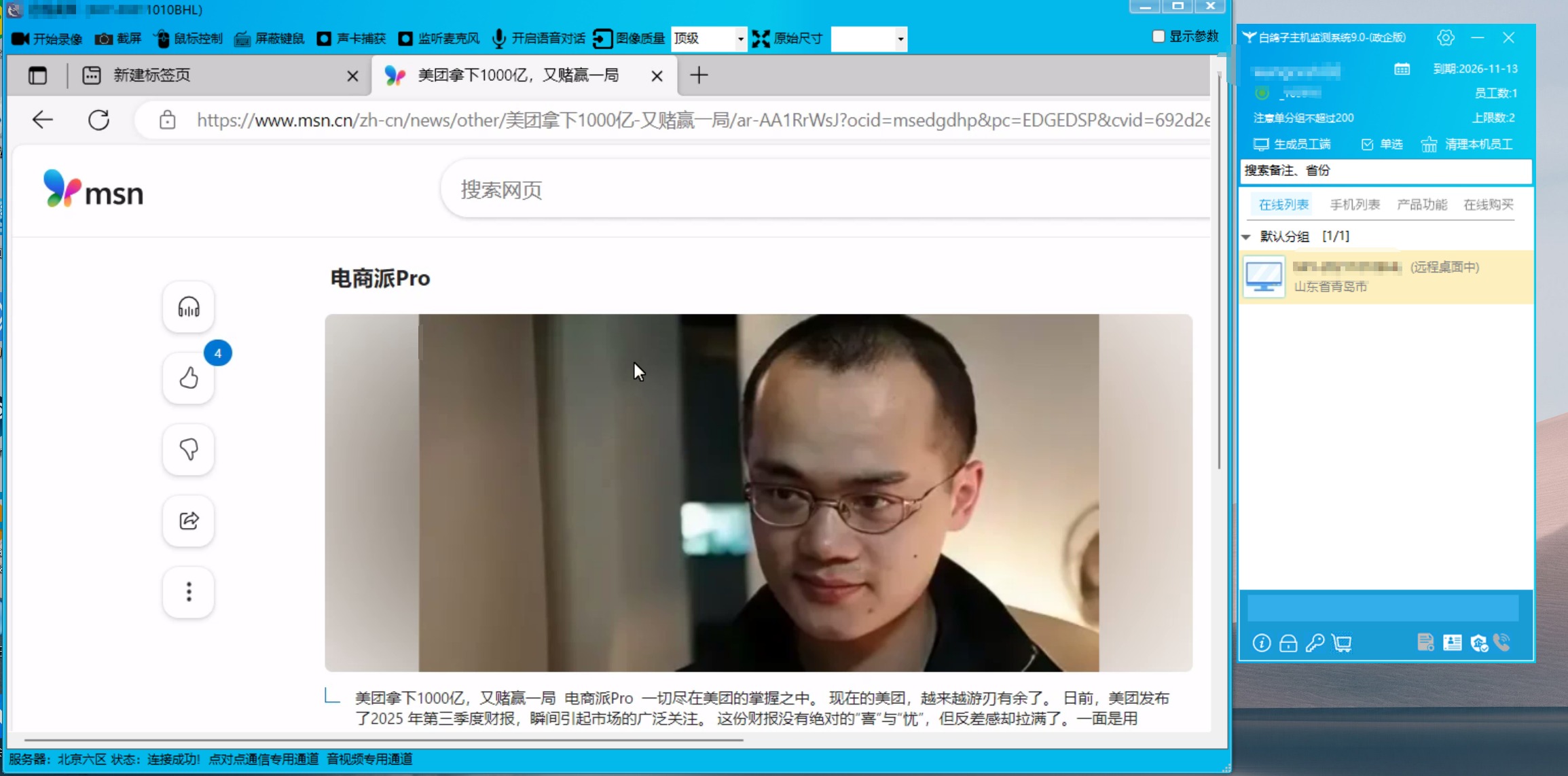 灰鴿子的使用極其簡單:只需在自己電腦下載經(jīng)理端,一鍵生成員工端安裝包,發(fā)送給需要被控的電腦安裝即可。安裝成功后,被控設備自動顯示在經(jīng)理端在線列表中,操作如同QQ一樣直觀—右鍵點擊即可發(fā)起遠程桌面、文件傳輸,支持視頻遠程、聲卡捕獲、文字跨端復制粘貼等功能。免費版支持100臺設備長期管理,不限時長、不降畫質,登錄日志、操作審計等功能全免費。其企業(yè)版“白鴿子”更進一步,提供后臺自動錄像、文件操作記錄、U盤管控、網(wǎng)址審計、離職預警等深度管控功能。