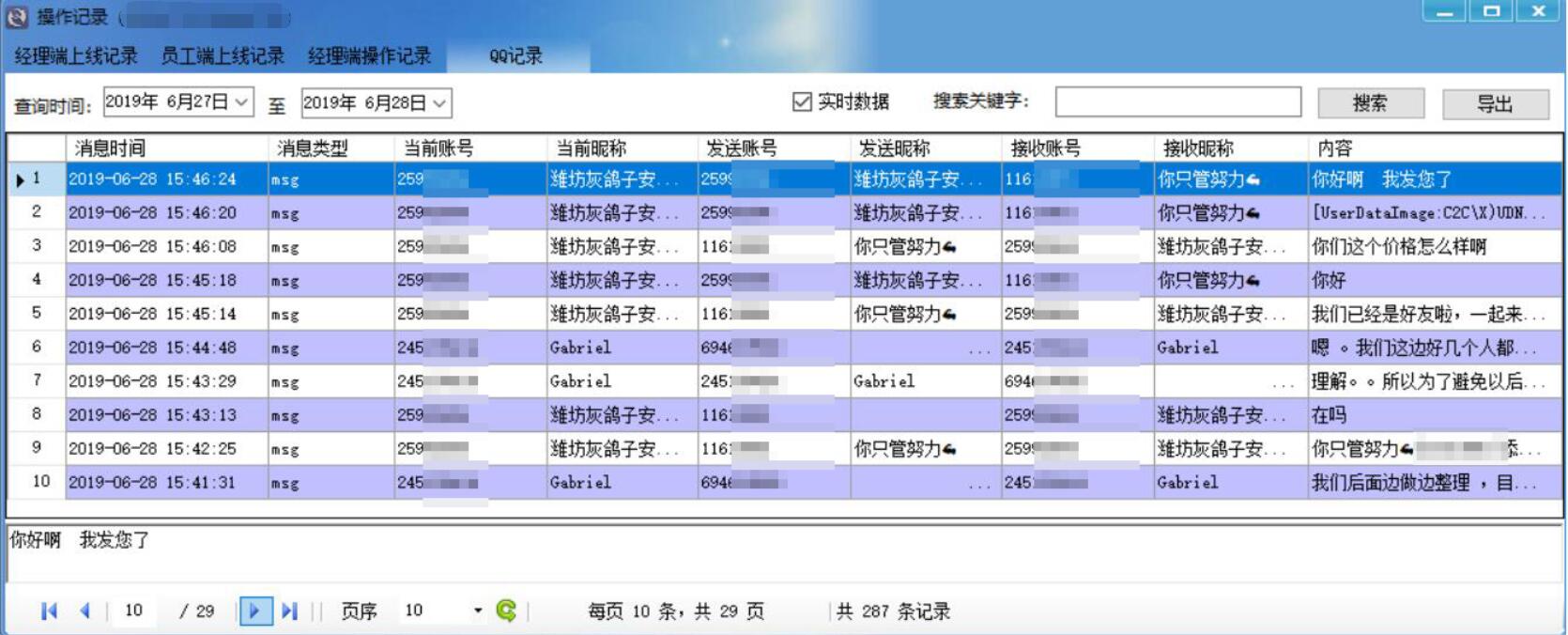 QQ聊天記錄監(jiān)控功能 2019-07-10 QQ聊天記錄監(jiān)控功能 支持QQ等聊天工具記錄,可捕獲接收、發(fā)送者消息??啥ㄖ撇东@聊天附件及圖片。及時對企業(yè)信息進(jìn)行安全過濾,發(fā)現(xiàn)敏感行為。