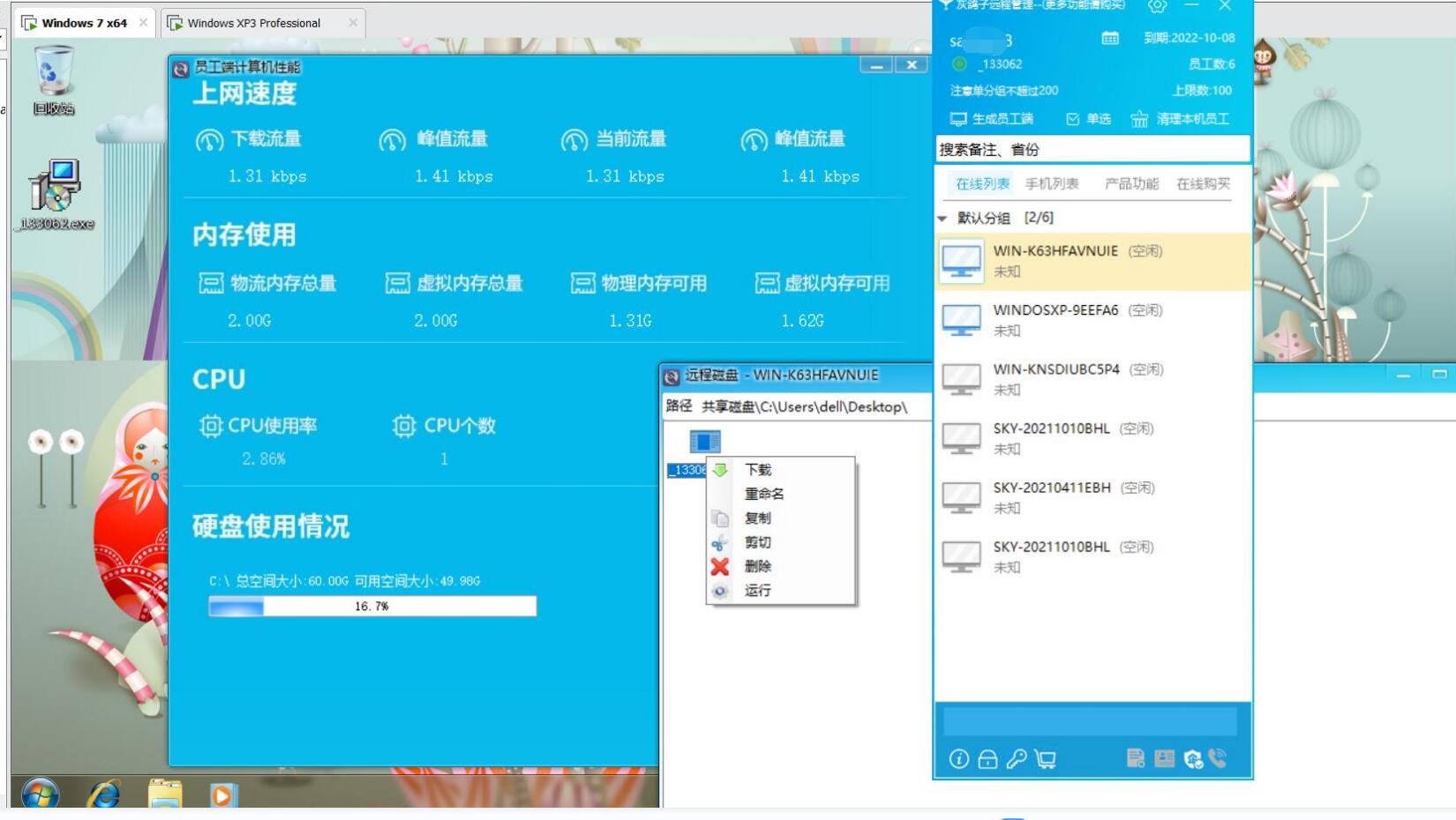 實時顯示CPU、網(wǎng)絡(luò)流量情況、內(nèi)存、硬盤情況。